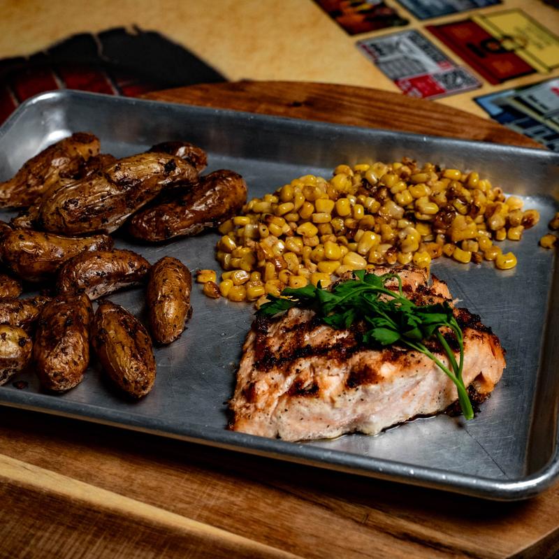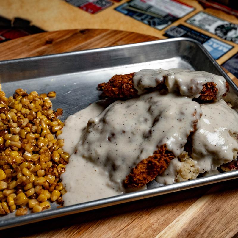 Moooommmm..Meatloaf. This one is a crowd fav. Our own homemade meatloaf topped with a drizzle of our delicious loaf sauce. Mashed tates and veggies.